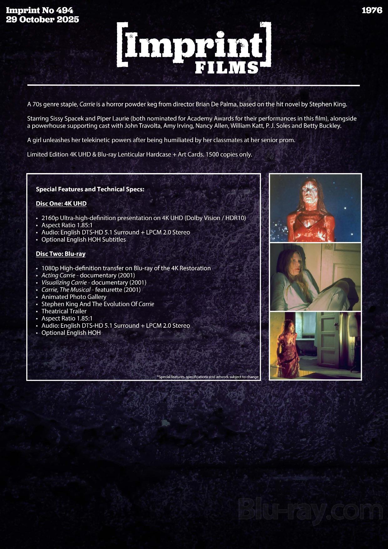 Carrie (1976). All releases are scheduled to arrive on the market on October 29.