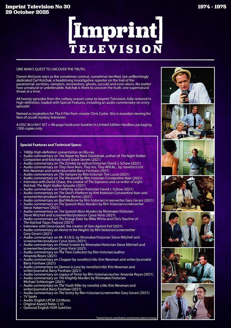 Australian label Imprint Films has informed us that it will add three new television releases to its Blu-ray catalog. They are: