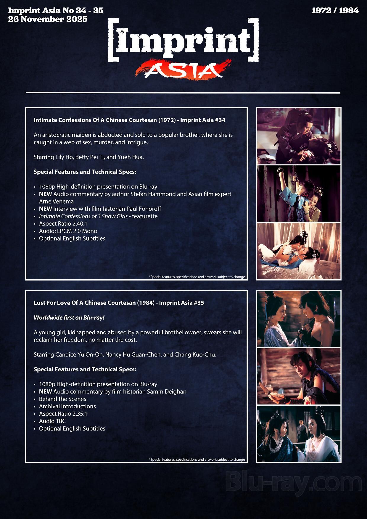 Intimate Confessions of a Chinese Courtesan / Lust For Love of a Chinese Courtesan (1972-1984). The two releases are scheduled to arrive on the market on November 26.