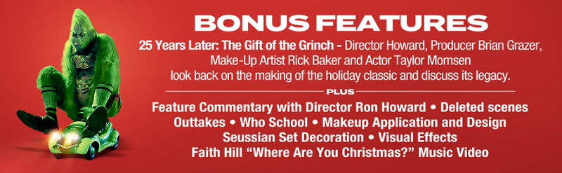 - NEW 25 Years Later: The Gift of THE GRINCH – Director Ron Howard, producer Brian Grazer, make-up artist Rick Baker and actor Taylor Momsen look back on the making of the holiday classic and discuss its legacy.