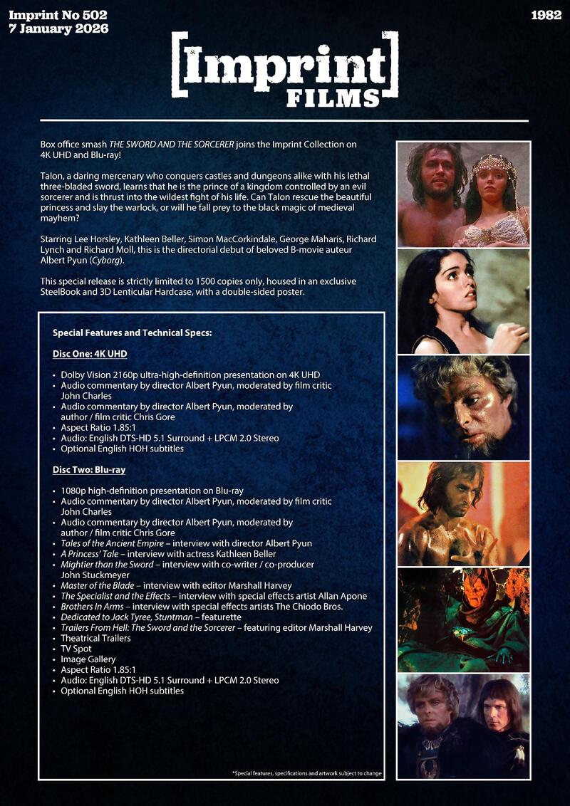 The Sword and the Sorcerer (1982). The two releases are scheduled to arrive on the market on January 7.