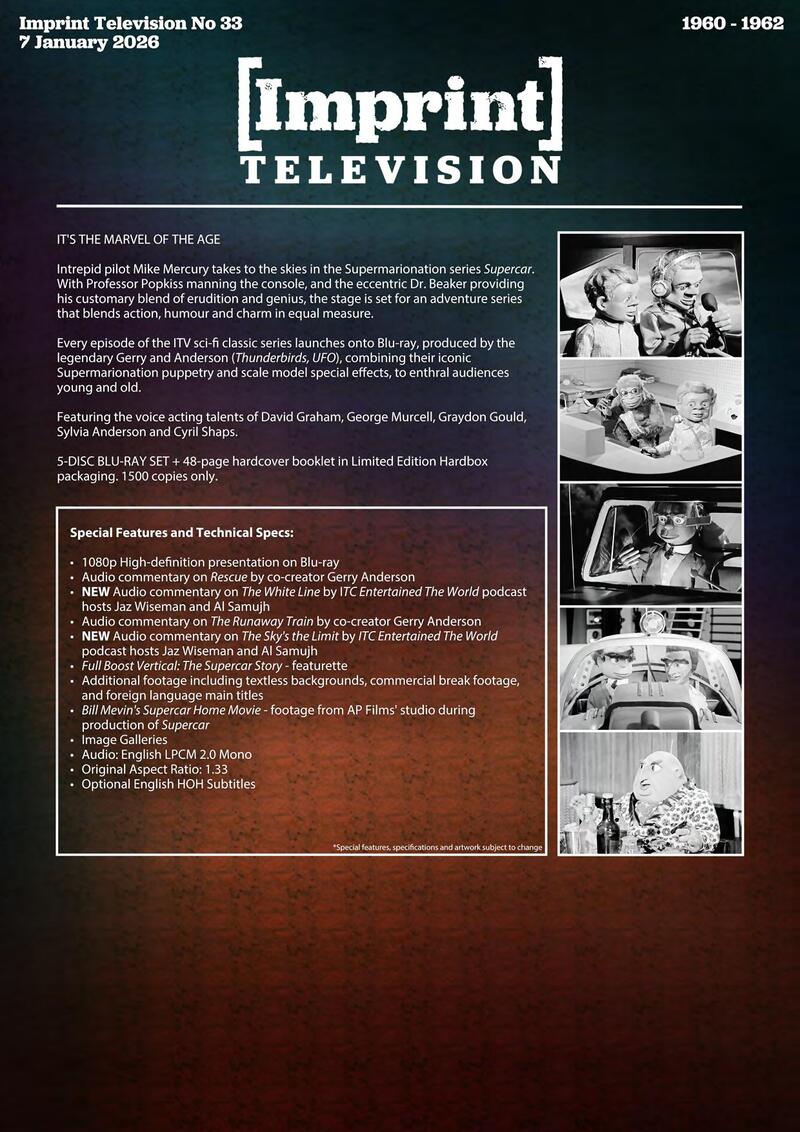 Australian label Imprint Films has informed us that it will add to its Blu-ray catalog two new television releases. They are:
