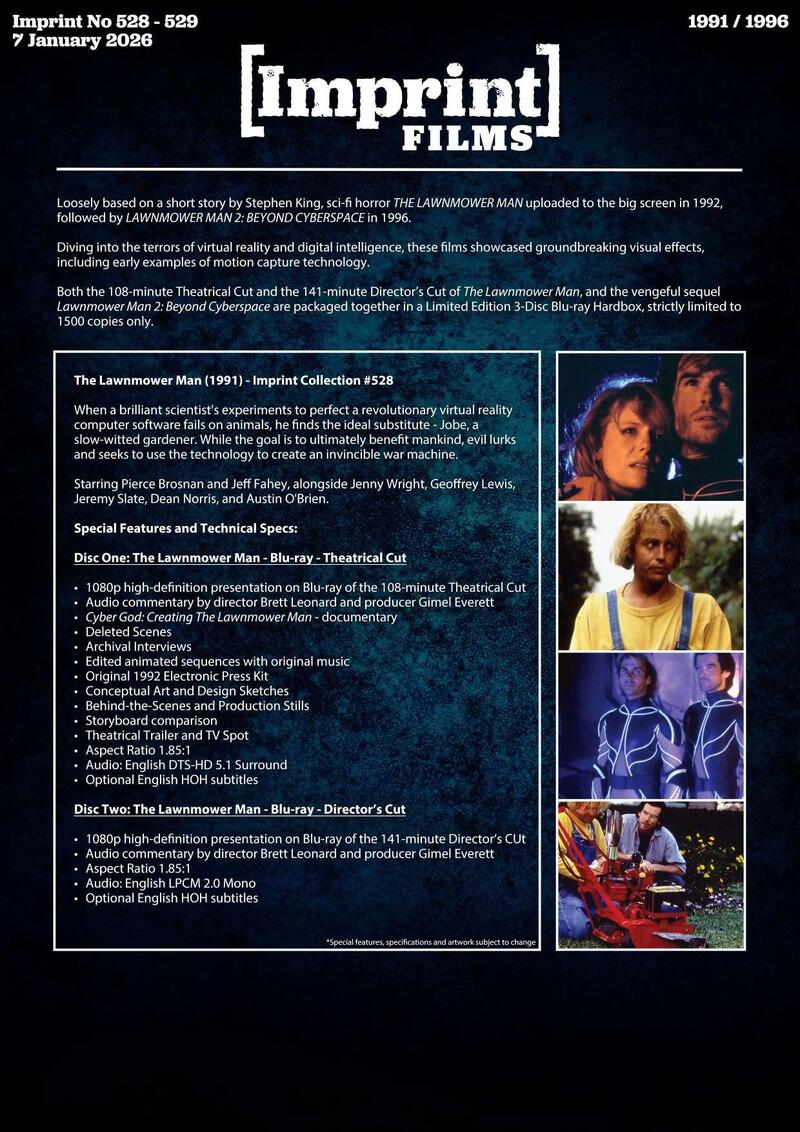 Lawnmower Man I & II (1992-1996). The releases are scheduled to arrive on the market on January 7.