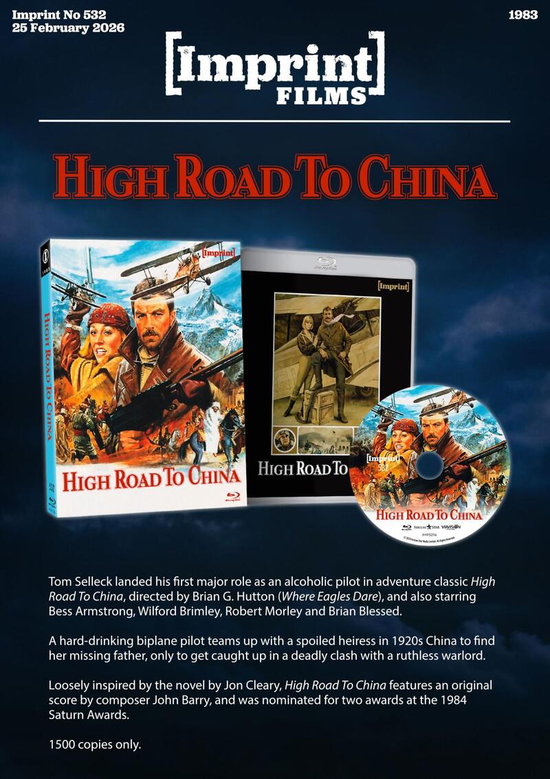 Tom Selleck landed his first major role as an alcoholic pilot in adventure classic High Road To China, directed by Brian G. Hutton (Where Eagles Dare), and also starring Bess Armstrong, Wilford Brimley, Robert Morley and Brian Blessed.