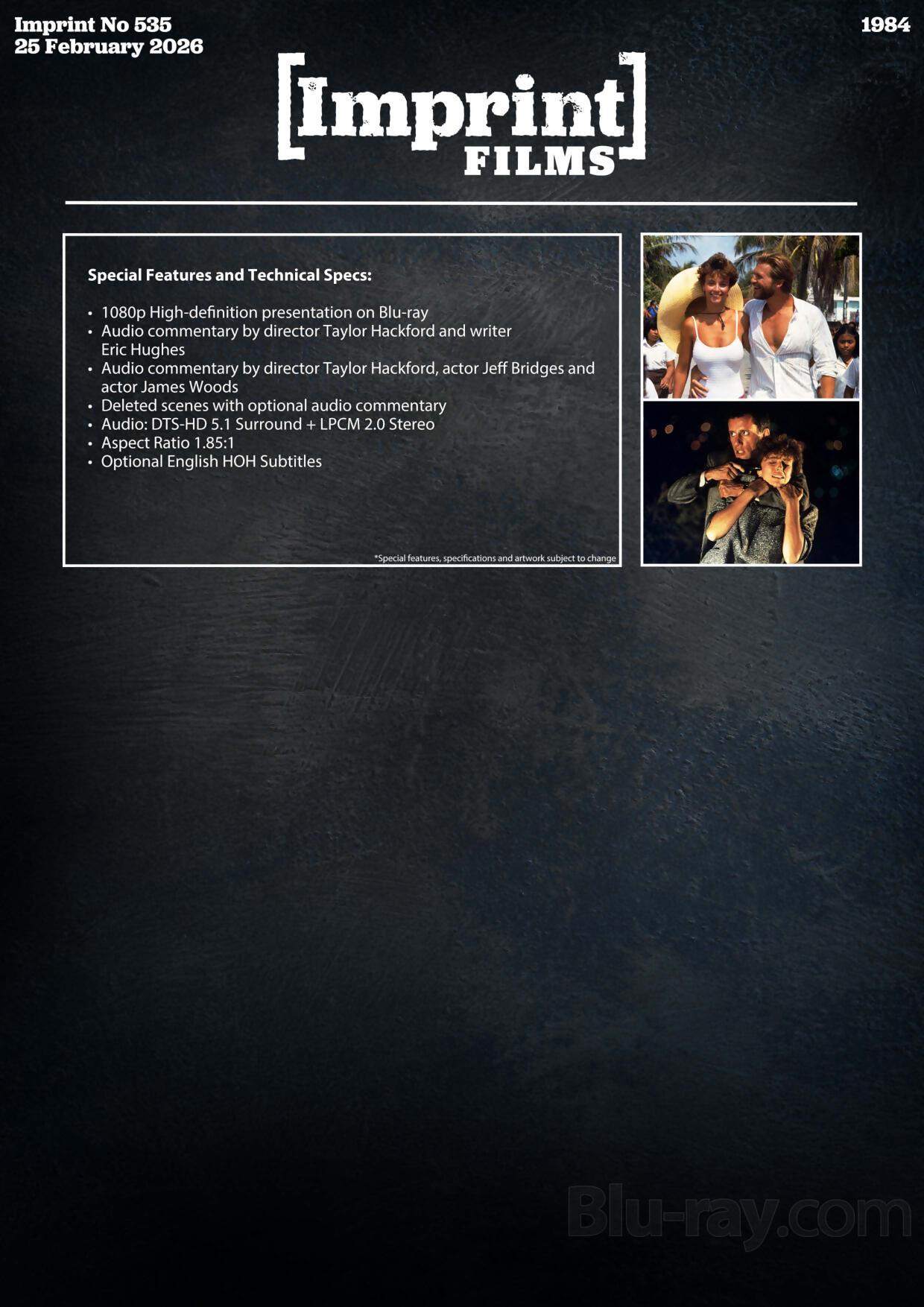 Rachel Ward, Jeff Bridges, James Woods, and Jane Greer star in this romantic thriller, from the Academy Award-nominated director of An Officer and a Gentleman, Taylor Hackford.
