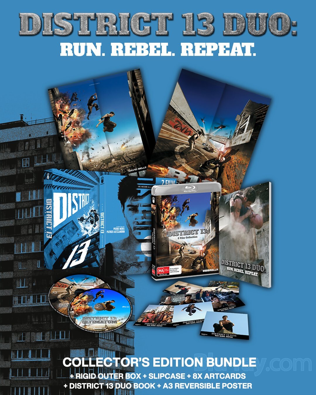 Behind Paris's fortified walls lies District 13, a sealed-off world of fractured alliances, brutal survival, and lawless rule. When danger inside the district threatens to ignite into full-scale chaos, two men - one from the streets, one from the state - are forced into an uneasy partnership, racing across rooftops and through crumbling towers to stop catastrophe before it spills beyond the walls.