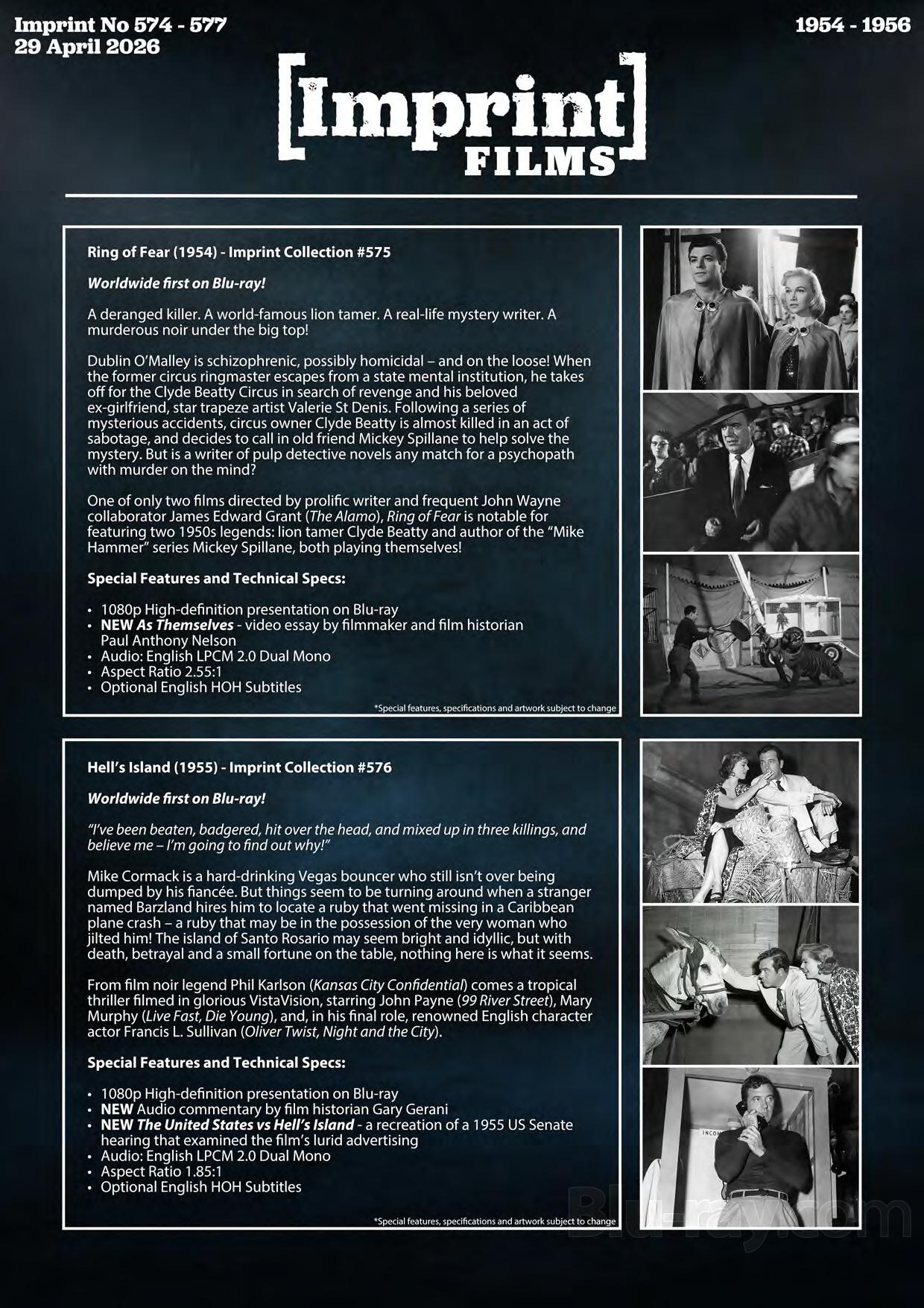 One of only two films directed by prolific writer and frequent John Wayne collaborator James Edward Grant (The Alamo), Ring of Fear is notable for featuring two 1950s legends: lion tamer Clyde Beatty and author of the "Mike Hammer" series Mickey Spillane, both playing themselves!