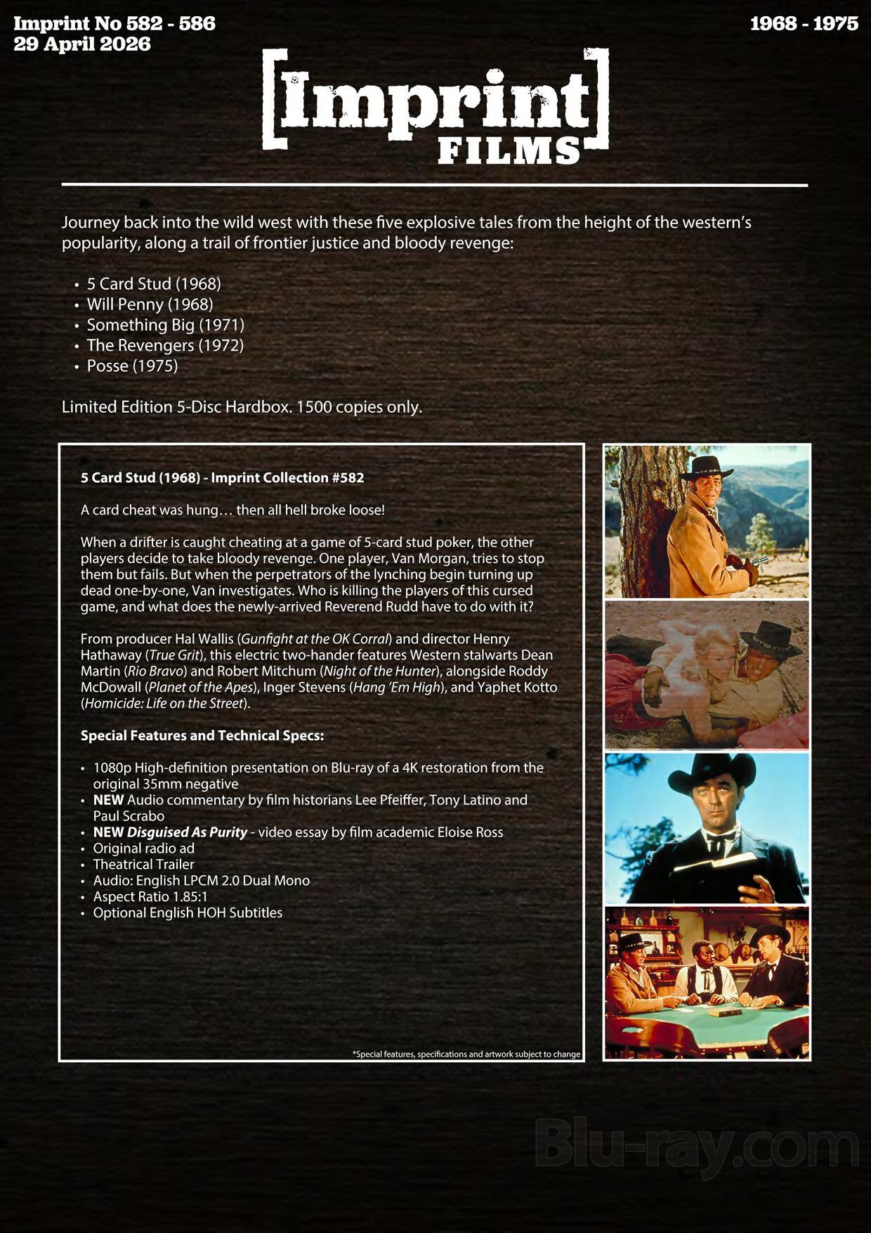 From director Andrew V McLaglen (The Wild Geese) and writer James Lee Barrett (Smokey and the Bandit) comes a comedy Western featuring Dean Martin (The Sons of Katie Elder), Brian Keith (Nevada Smith), Carol White (Poor Cow), and Honor Blackman (Goldfinger).