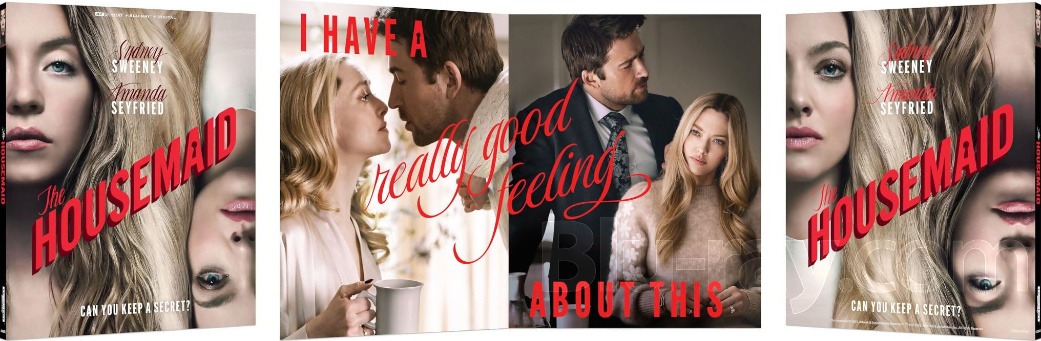 Lionsgate Home Entertainment will release on 4K Blu-ray and Blu-ray Paul Feig's The Housemaid (2025), starring Sydney Sweeney, Amanda Seyfried, Brandon Sklenar, Elizabeth Perkins, and Michele Morrone. The two releases are scheduled to arrive on the market on March 17.