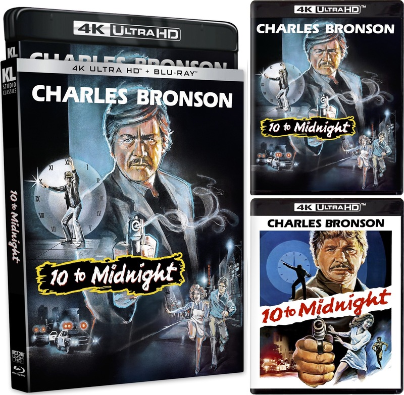 10 to Midnight (1983), starring Charles Bronson, Lisa Eilbacher, Andrew Stevens, Gene Davis, and Geoffrey Lewis. The release is scheduled to arrive on the market on May 12.