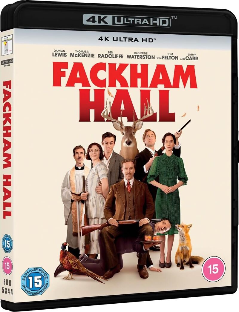 British label Entertainment in Video (EIV) will release on 4K Blu-ray and Blu-ray Jim O'Hanlon's comedy Fackham Hall (2025), starring Damian Lewis, Katherine Waterston, Thomasin McKenzie, Tom Felton, and Lizzie Hopley. The two releases are scheduled to arrive on the market on March 16.