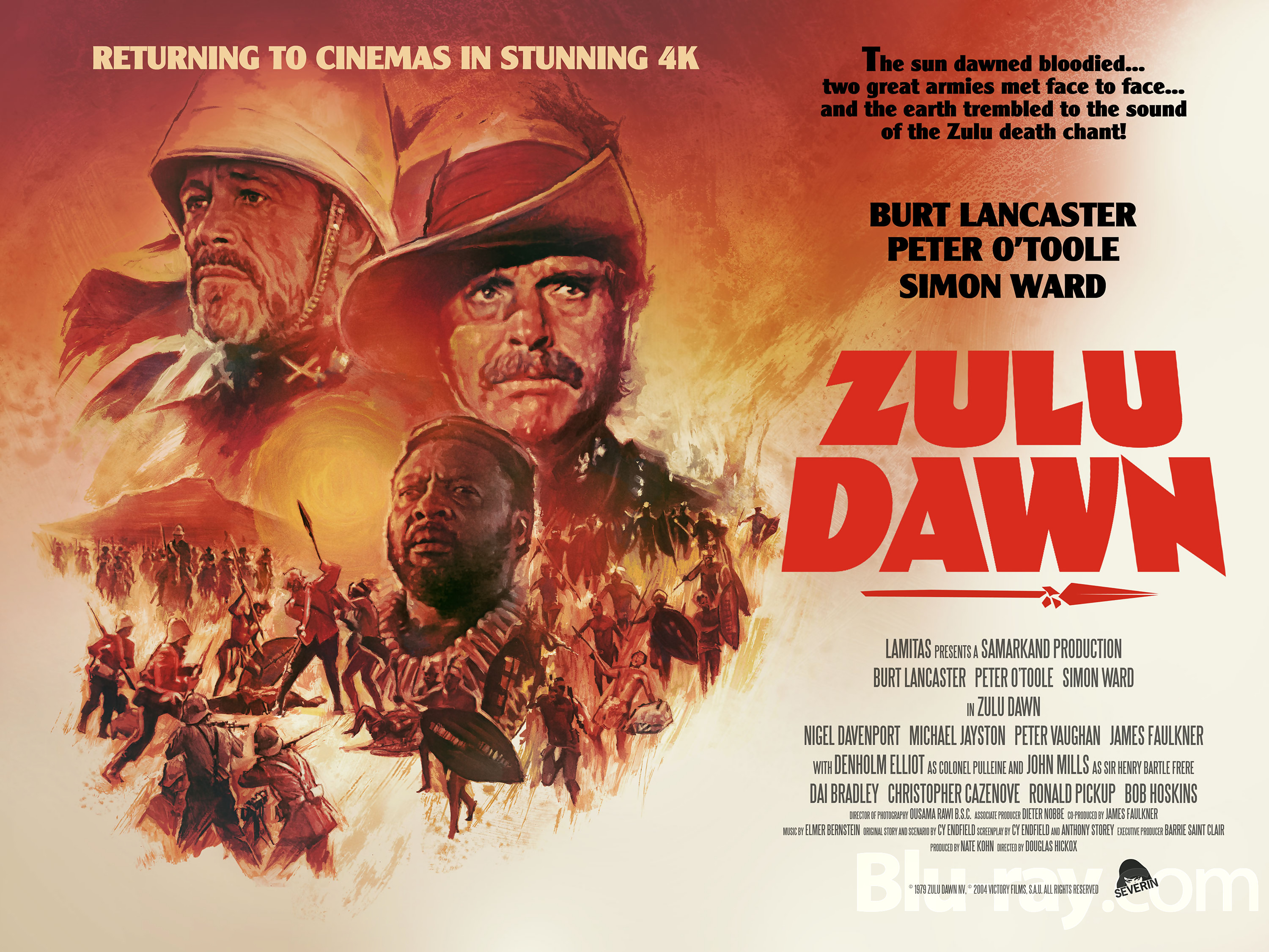 Zulu Dawn (1979), starring Burt Lancaster, Simon Ward, Denholm Elliott, Peter O'Toole, and James Faulkner. The two releases are scheduled to arrive on the market on Mat 25.