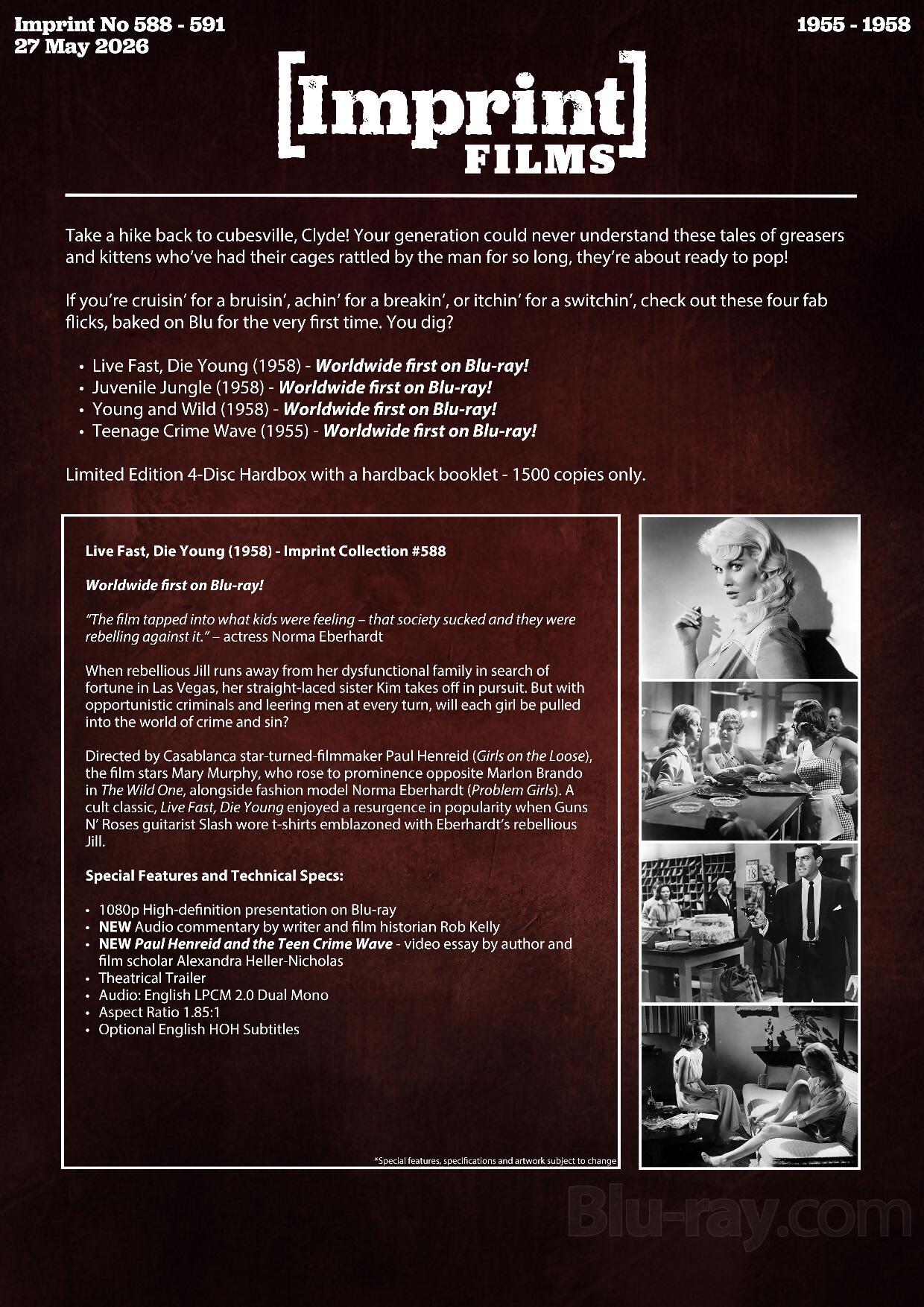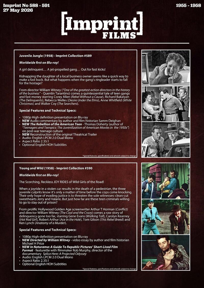 Australian label Imprint Films has informed us that it will add two new box sets to its Blu-ray catalog. They are: Youth Gone Wild!
