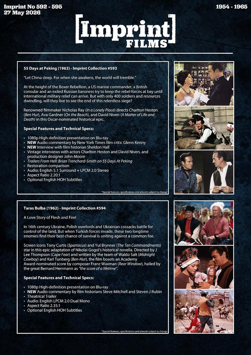 In 16th century Ukraine, Polish overlords and Ukrainian cossacks battle for control of the land. But when Turkish forces invade, these two longtime enemies find their best chance of survival is uniting against a common foe. Screen icons Tony Curtis (Spartacus) and Yul Brynner (The Ten Commandments) star in this epic adaptation of Nikolai Gogol's historical novella. Directed by J Lee Thompson (Cape Fear) and written by the team of Waldo Salt (Midnight Cowboy) and Karl Tunberg (Ben-Hur), the film boasts an Academy Award-nominated score by composer Franz Waxman (Rear Window), hailed by the great Bernard Herrmann as "the score of a lifetime"