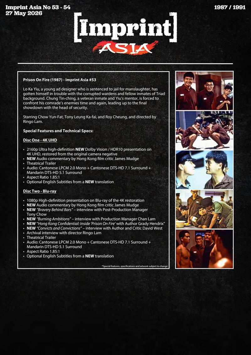 Australian label Imprint Film has informed us that it will add several new Asian titles to its catalog. They are: