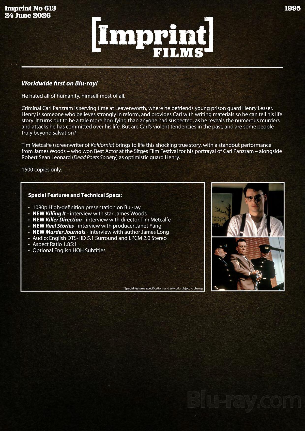 Tim Metcalfe (screenwriter of Kalifornia) brings to life this shocking true story, with a standout performance from James Woods – who won Best Actor at the Sitges Film Festival for his portrayal of Carl Panzram – alongside Robert Sean Leonard (Dead Poets Society) as optimistic guard Henry.